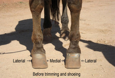 The awesome thing is – it’s so easy! – let him be pigeon toed. It’s not going to kill him, its not the cause of his lameness, its not going to loose you marks in the show ring. You can’t force the hoof to be something its not. Leave him as nature intended That is, with a short toe, and pedal bone parallel to the ground, its not going to cure the pigeon toe, but the short toe will make it appear less noticeable My horse has been Cytek shod for two years. A short toe and sole support  have done wonders for him. In two years he has NEVER been lame. Not even remotely tender. He has never fallen over, he has never tripped over his own feet, and he is to this day classed as a pigeon toed horse. We are now both learning basic dressage moves, something he handles with ease as a pigeon toed horse.